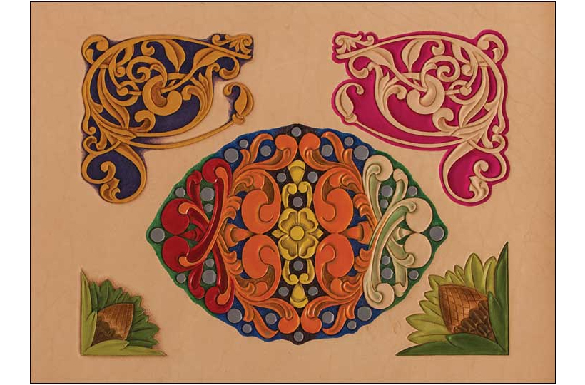 - pritlačíte šablónu na kožu a následne s modelovacím perom pretlačte motív zo šablóny na kožu